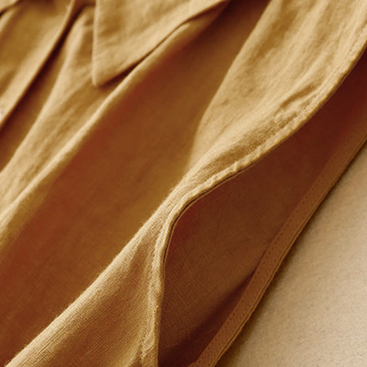 Vestido midi de algodón sin mangas con solapa y botones en la parte delantera, estilo cárdigan de Buddha Stones, de verano, liso, con cordones - Vara de oro - US12, UK/AU16, EU44 (2XL) - image 0