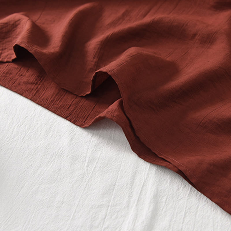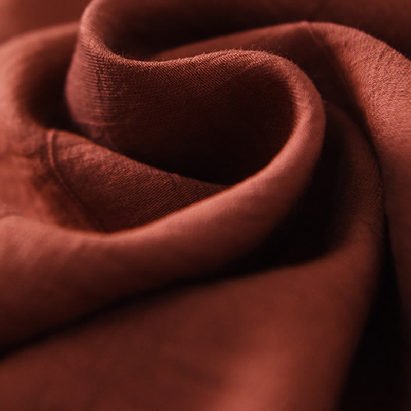 Vestido midi de lino y algodón con mangas cortas y diseño cheongsam liso con Buddha Stones y cordones - Ladrillo refractario - US8-10,UK/AU12-14,EU40-42 (2XL) - image 1