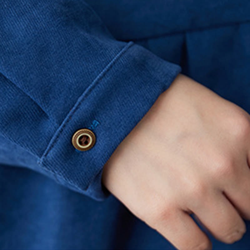 Vestido midi de lino y algodón térmico de manga larga con bolsillos y diseño de botones lisos de Buddha Stones - Azul medio - US8-10,UK/AU12-14,EU40-42 (2XL) - image 14
