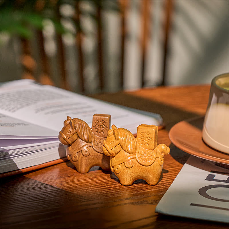 Buddha Stones Año del Caballo Hazte rico Sándalo verde Hoja pequeña Sándalo rojo Madera de tilo Animales Decoración positiva