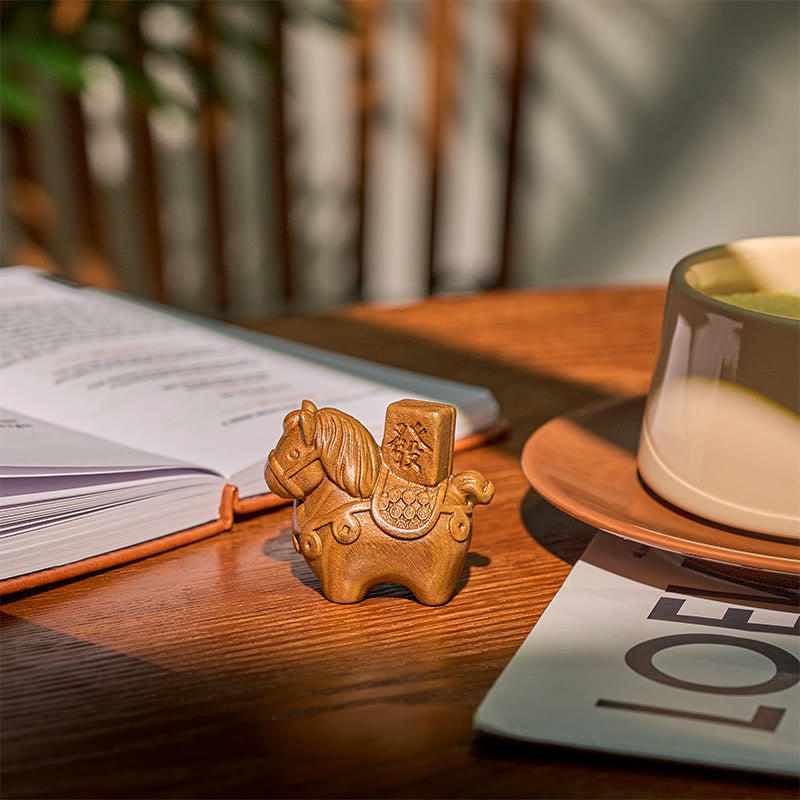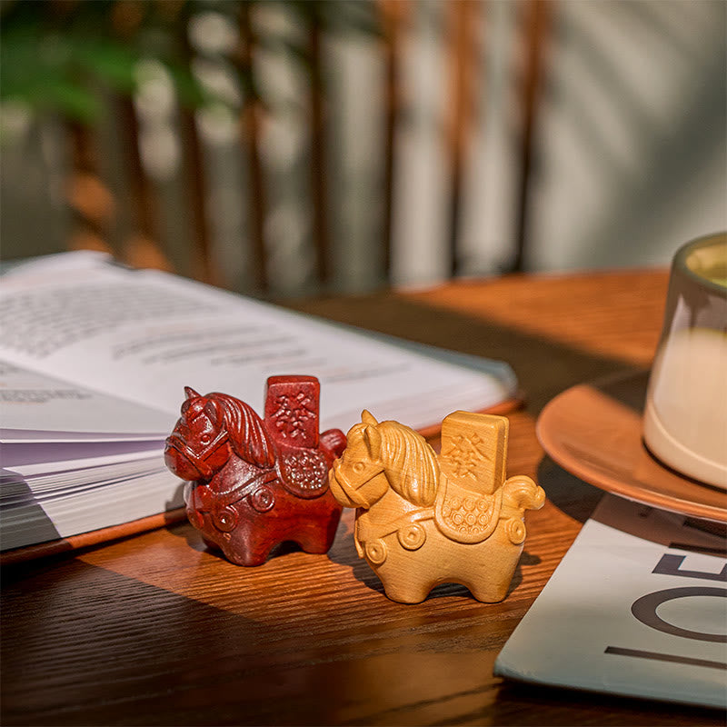 Buddha Stones Año del Caballo Hazte rico Sándalo verde Hoja pequeña Sándalo rojo Madera de tilo Animales Decoración positiva - image 1
