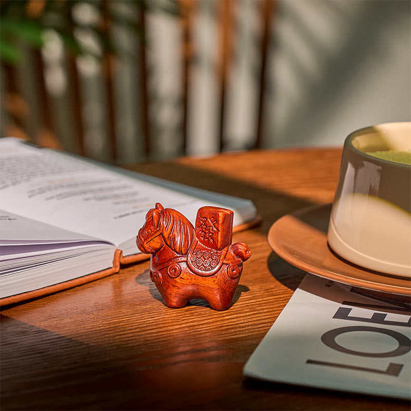 Buddha Stones Año del Caballo Hazte rico Sándalo verde Hoja pequeña Sándalo rojo Madera de tilo Animales Decoración positiva - Madera de tilo (51*54*30 mm) - image 8