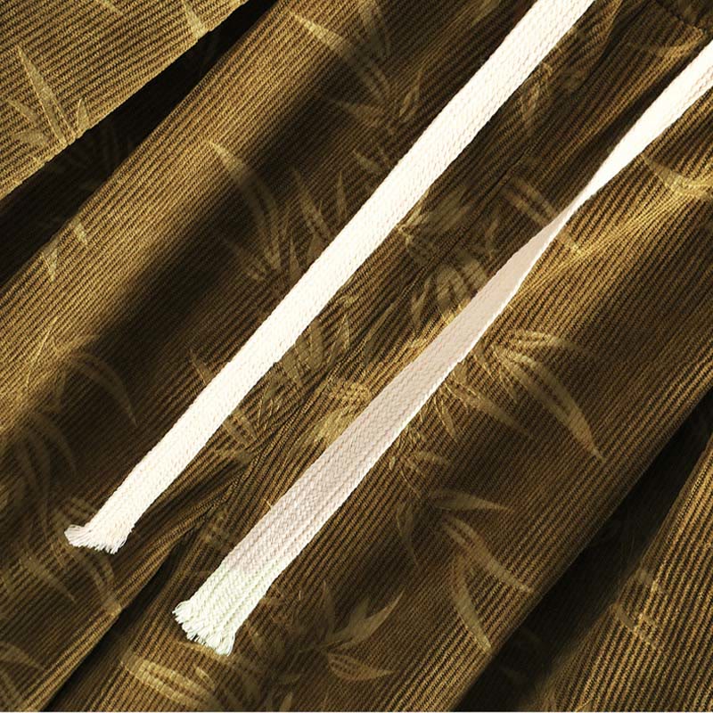 Pantalones anchos de pana con cordón de algodón y hojas de bambú y Buddha Stones para hombre con bolsillos