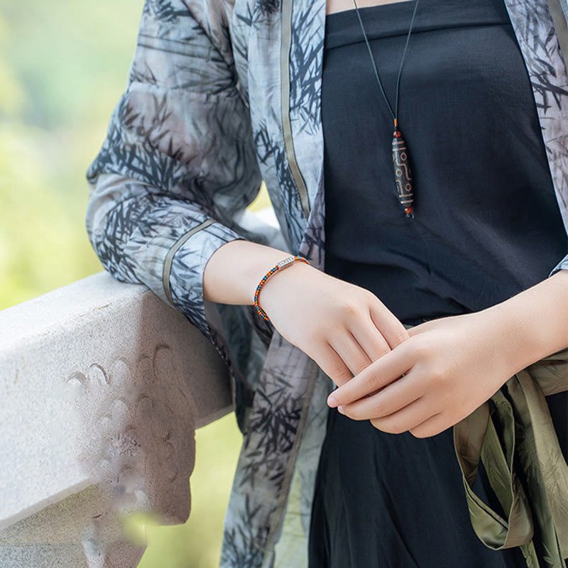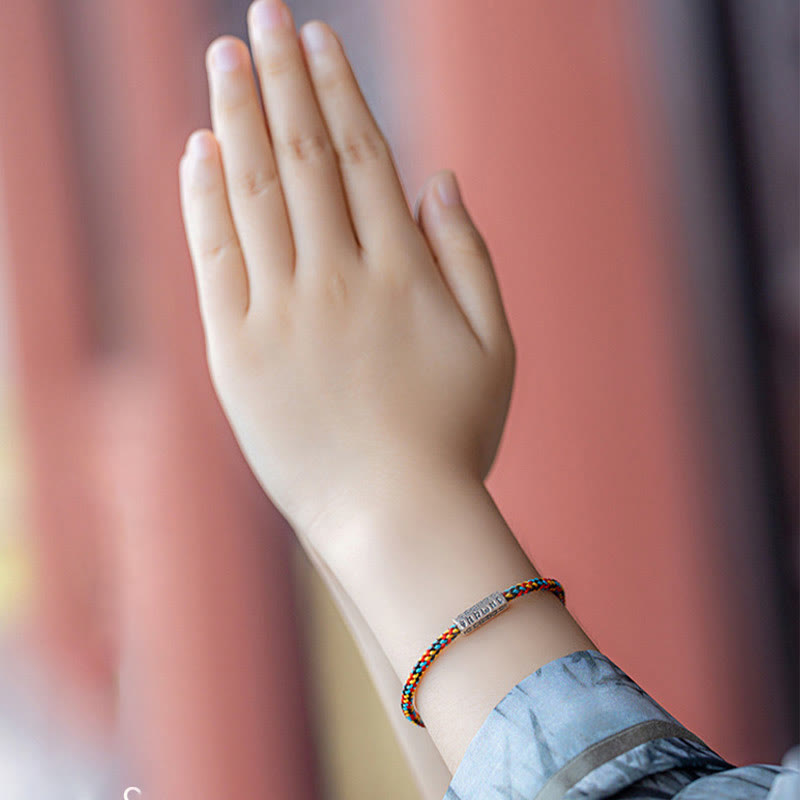 Pulsera de la suerte de plata de ley 925 con seis palabras verdaderas y hilo rojo y hilo negro de Buddha Stones
