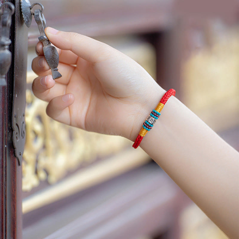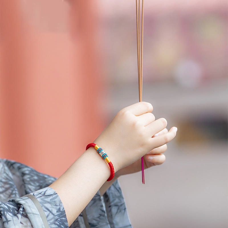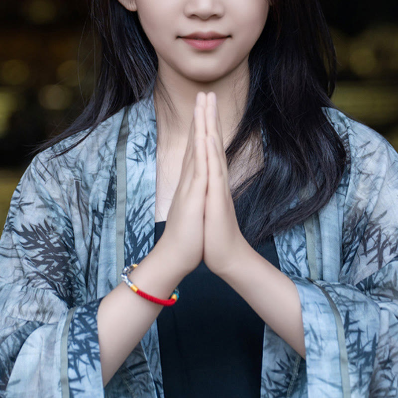 En los linajes del budismo vajrayana tibetano, es común atar una cuerda o hilo alrededor de la muñeca durante las ceremonias. Tradicionalmente, el lama bendice la cuerda y luego hace un nudo y la impregna con un mantra. Al igual que en otras tradiciones, se dice que estos cordones rojos traen suerte y ofrecen protección. En la antigua leyenda china, el hilo rojo del destino es invisible y une a todos aquellos cuyas vidas se entrelazarán. Está regido por el dios chino del matrimonio, Yue Lao, ya que se asocia principalmente con el vínculo entre dos personas destinadas a casarse. A lo largo de la historia y en todas las filosofías, el hilo rojo se ha usado para protección, fe, buena suerte, fuerza y conexión.