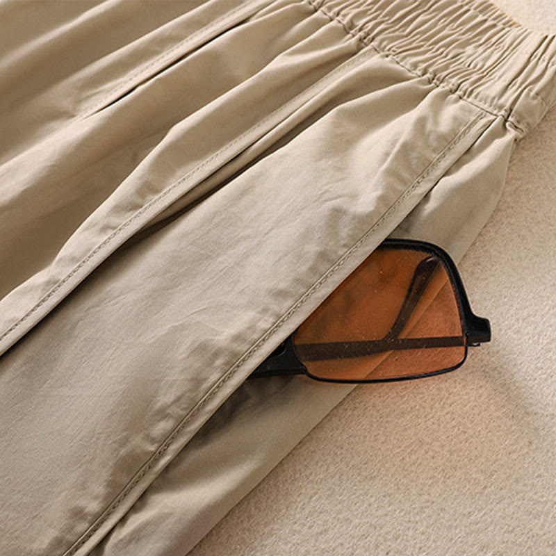 Buddha Stones Pantalones harén plisados de cintura alta para mujer, sencillos, de color puro y de verano, con bolsillos - Trigo - US8-10,UK/AU12-14,EU40-42 (2XL) - image 9