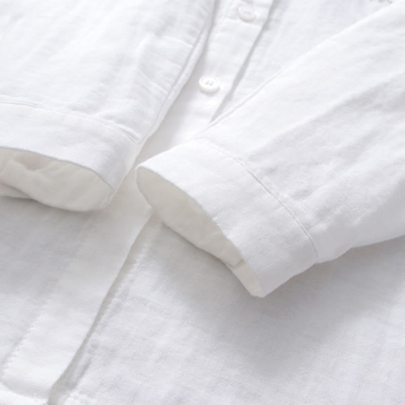 Camisa de manga larga de algodón para mujer con bordado de flores a rayas geométricas blancas y Buddha Stones) - image 1
