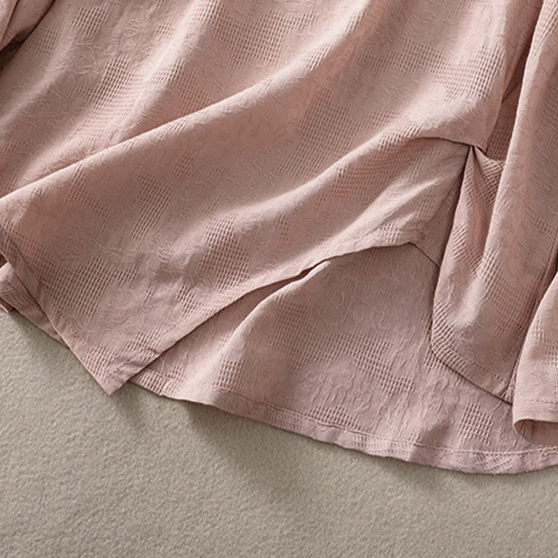 Camisa de manga larga de algodón para mujer con diseño plisado y bajo irregular en jacquard con Buddha Stones - Salmón oscuro - US8-10,UK/AU12-14,EU40-42 (2XL) - image 16