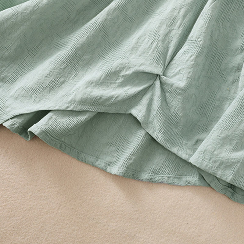 Camisa de manga larga de algodón para mujer con diseño plisado y bajo irregular en jacquard con Buddha Stones - image 12