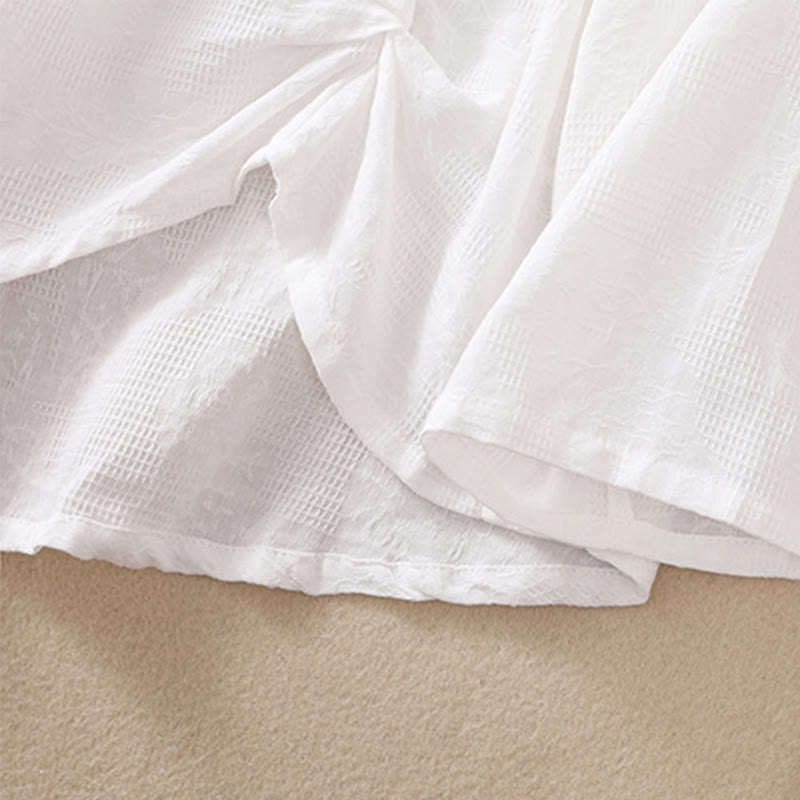 Camisa de manga larga de algodón para mujer con diseño plisado y bajo irregular en jacquard con Buddha Stones - Blanco - US8-10,UK/AU12-14,EU40-42 (2XL) - image 8
