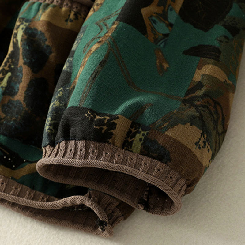 Camiseta de manga larga para mujer con cuello en V y bolsillos, con diseño geométrico de patchwork y Buddha Stones en otoño - Verde mar oscuro - US4-6, UK/AU8-10, EU36-38 (F) - image 8