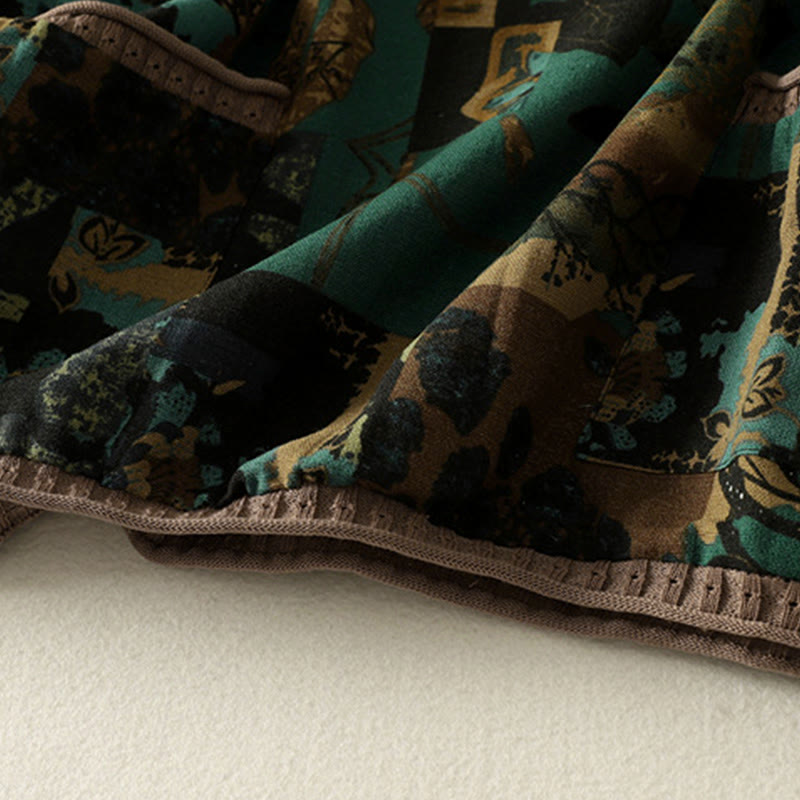 Camiseta de manga larga para mujer con cuello en V y bolsillos, con diseño geométrico de patchwork y Buddha Stones en otoño