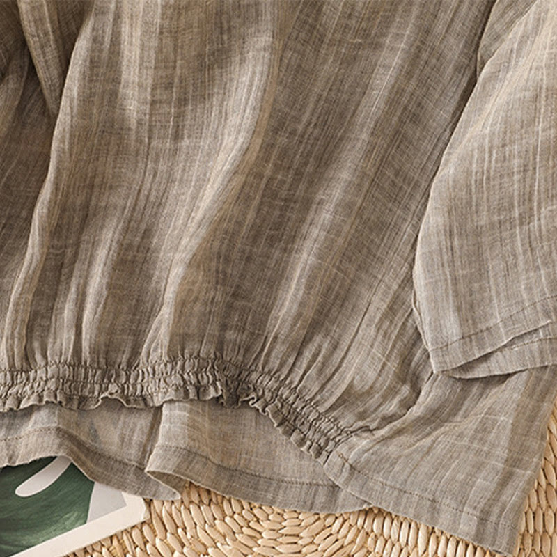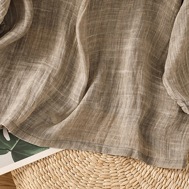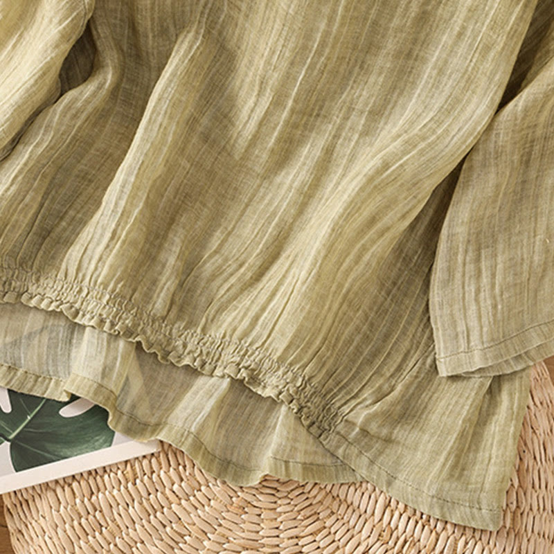 Camiseta informal de verano con cuello redondo y manga tres cuartos de algodón y lino para mujer con estampado de Buddha Stones - image 11