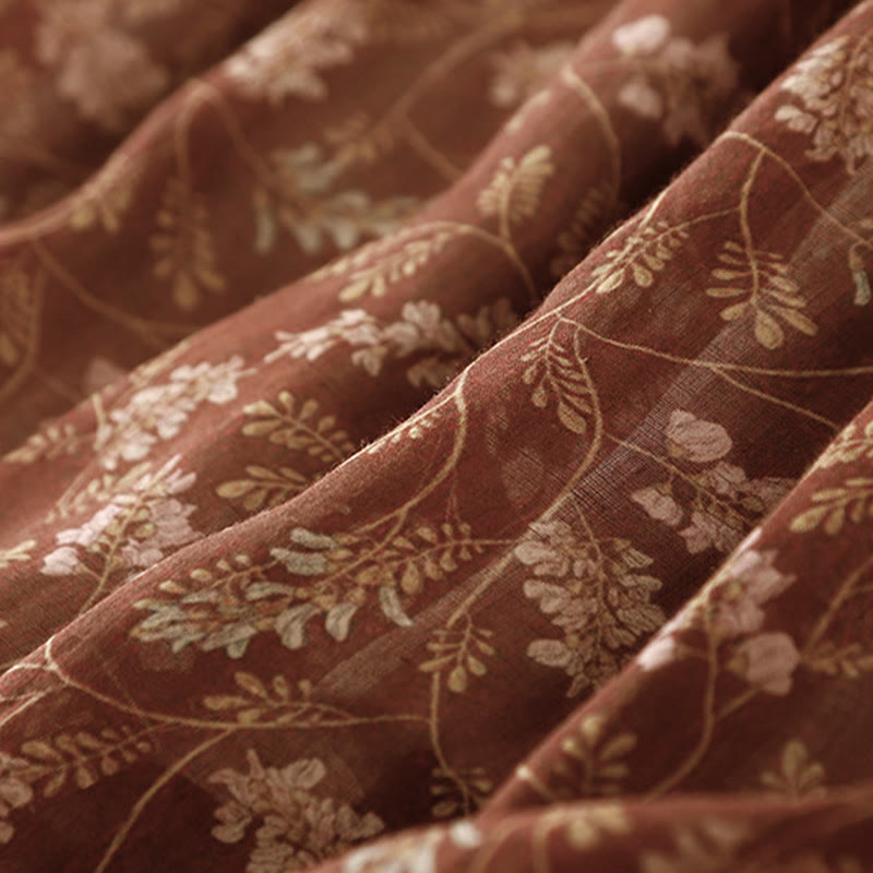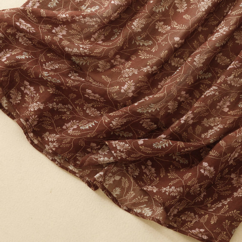 Falda de lino y algodón con cintura elástica para mujer, con estampado floral de Buddha Stones y bolsillos. - SaddleBrown - US8-10,UK/AU12-14,EU40-42 (2XL) - image 0
