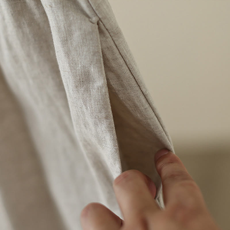 Pantalones de algodón de pierna ancha para mujer con bolsillos y diseño retro de patchwork de encaje liso de Buddha Stones Commute, longitud 7-8