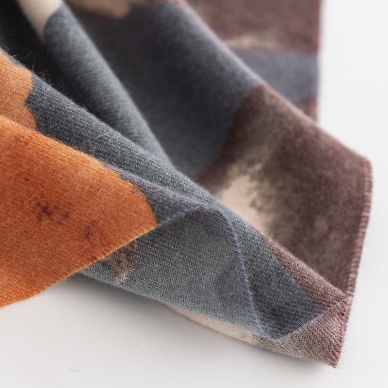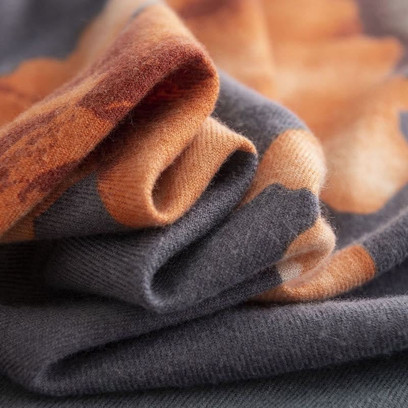 Chal tibetano con Buddha Stones , estilo artístico, estampado de hibisco sirio, bufanda cálida y acogedora para otoño e invierno - Caqui oscuro 190*55 cm - image 11