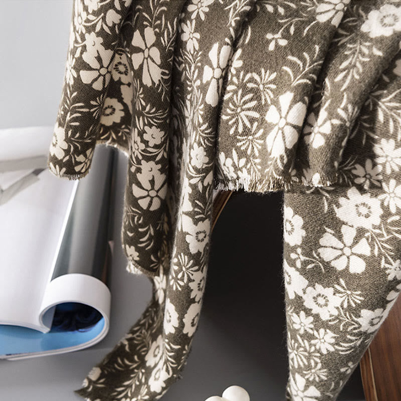 Chal tibetano con Buddha Stones y estampado de margaritas frescas para otoño e invierno, suave y cálido, para viajes - Caqui oscuro 190*65 cm - image 0