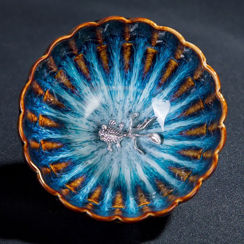 Taza de té de cerámica con incrustaciones de loto, pez dorado, dragón auspicioso, fénix, 130 ml