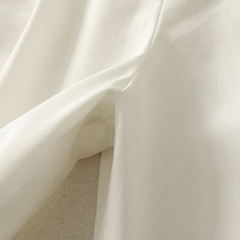 Pantalones anchos de algodón con cintura elástica y cremallera para mujer, bordados con Buddha Stones y bolsillos. - Blanco - US8-10,UK/AU12-14,EU40-42 (2XL) - image 1