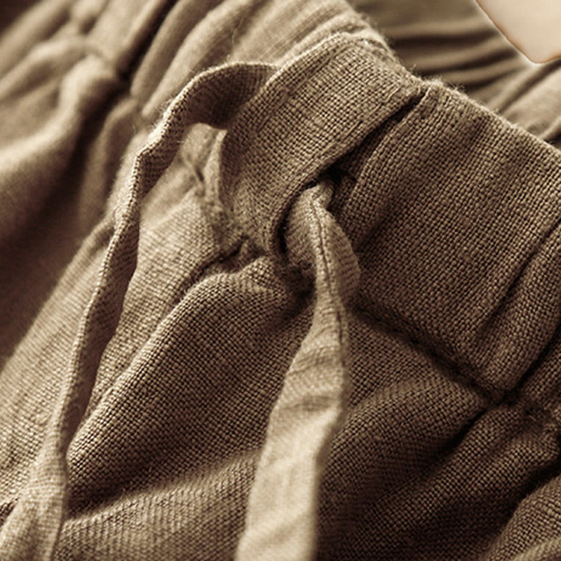 Pantalones harén de lino y algodón con bolsillos para mujer, de Buddha Stones, informales, lisos, de verano, con cordones, de largo 7-8 - image 15