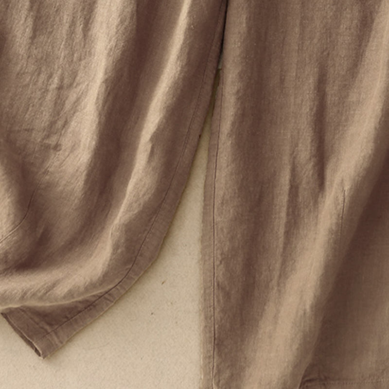 Pantalones harén de lino y algodón con bolsillos para mujer, de Buddha Stones, informales, lisos, de verano, con cordones, de largo 7-8