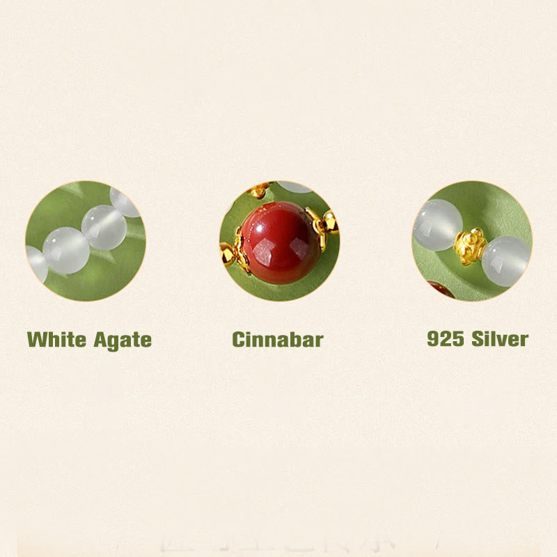 - tamaño de cuenta: ágata blanca 6 mm, cinabrio 8 mm
