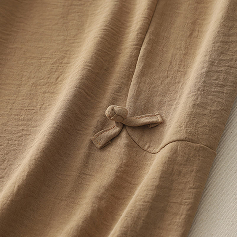 Pantalones casuales Buddha Stones Commute con diseño de botones de rana para mujer, de algodón y lino, de longitud 7-8, con bolsillos
