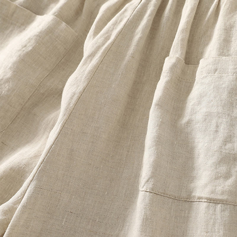 Pantalones casuales retro con bordado de Buddha Stones, de algodón y lino, para mujer, de longitud 7-8, con bolsillos - image 15