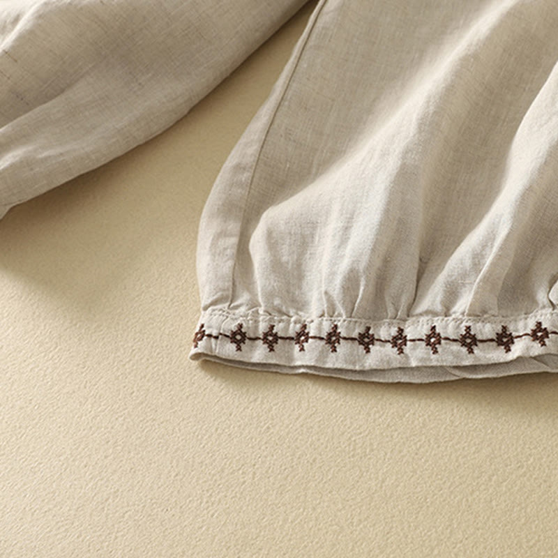 Pantalones casuales retro con bordado de Buddha Stones, de algodón y lino, para mujer, de longitud 7-8, con bolsillos - image 10