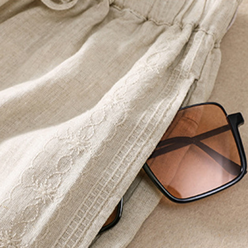 Pantalones cortos de lino y algodón con cordón ajustable y estampado floral con Buddha Stones para mujer, con bolsillos - image 10