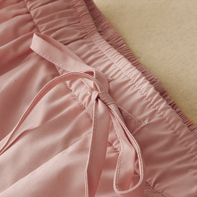 Pantalones de algodón hasta el tobillo con pernera ancha y bolsillos para mujer, diseño de patchwork, encaje liso y cordón ajustable, Buddha Stones Commute