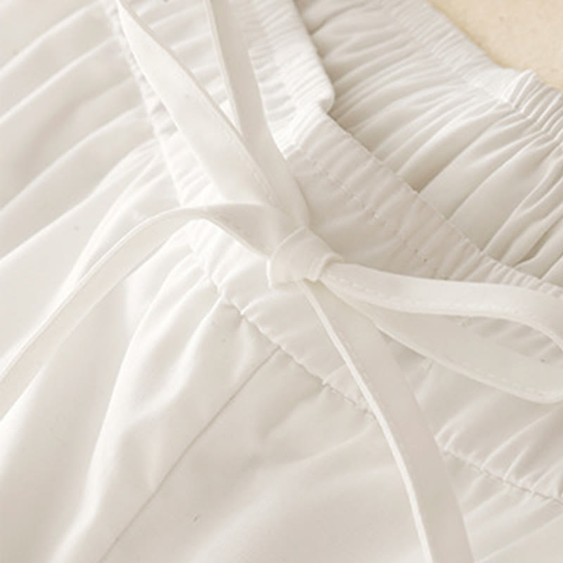 Pantalones de algodón hasta el tobillo con pernera ancha y bolsillos para mujer, diseño de patchwork, encaje liso y cordón ajustable, Buddha Stones Commute - Blanco - US12, UK/AU16, EU44 (2XL) - image 8
