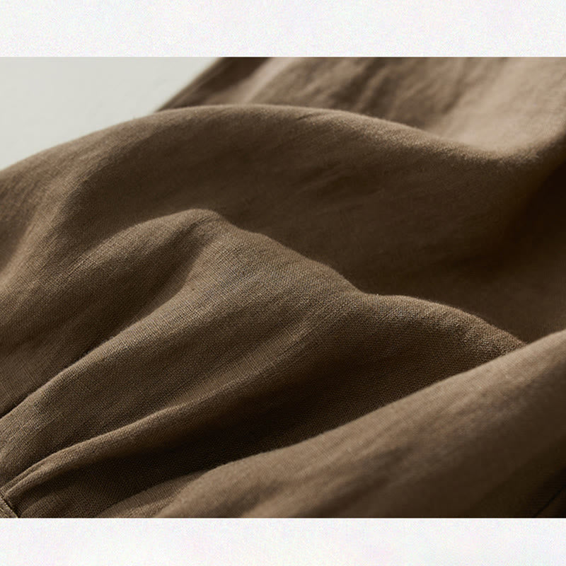 Pantalones harén de lino y algodón con cintura alta para mujer, de Buddha Stones Commute, con bolsillos - Marrón silla de montar - US8-10,UK/AU12-14,EU40-42 (2XL) - image 0