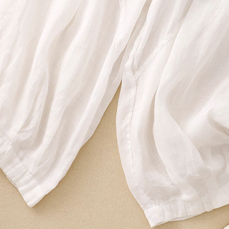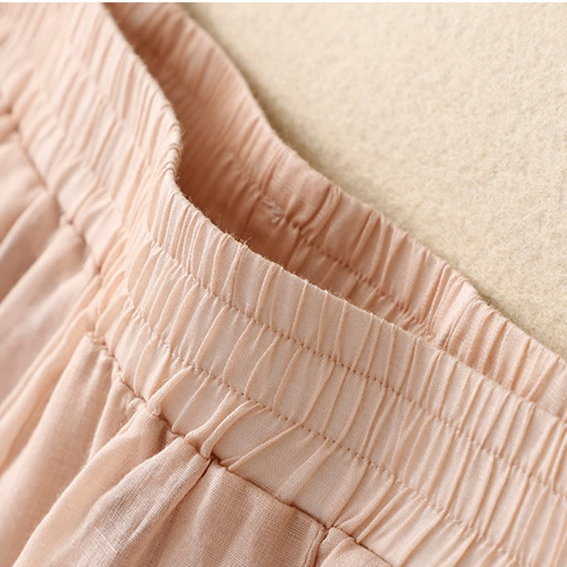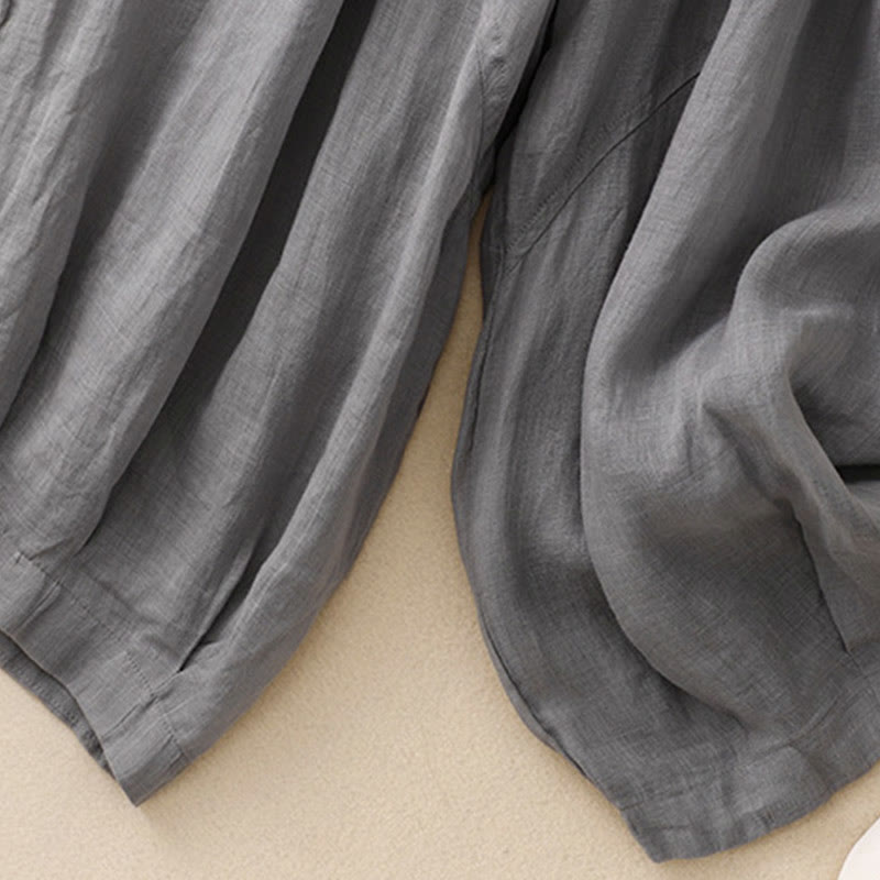 Pantalones harén de lino y algodón para mujer con estampado bordado de Buddha Stones y bolsillos