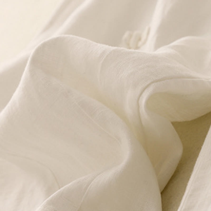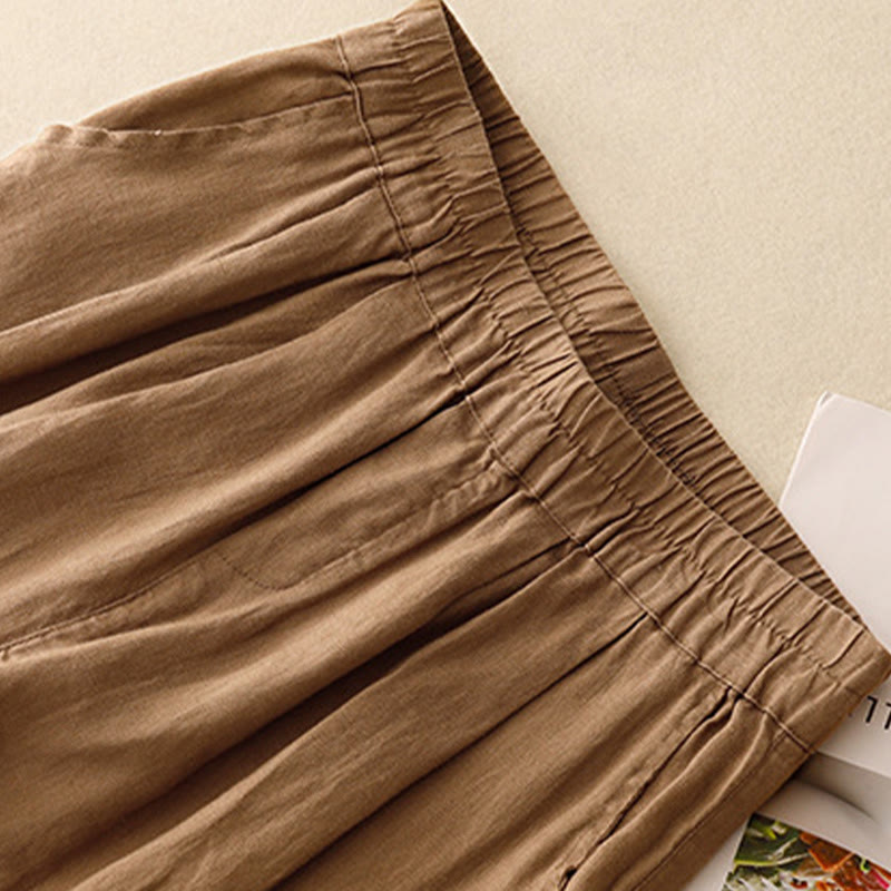 Pantalones harén de lino y algodón para mujer, informales, con diseño de botones de rana, de Buddha Stones, de largo 7-8 y bolsillos - image 13