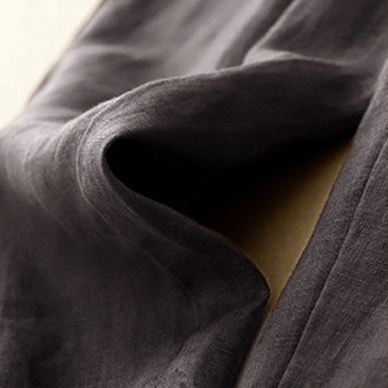 Pantalones harén de lino y algodón para mujer, informales, lisos, de verano , con bolsillos, de 7 a 8 botones