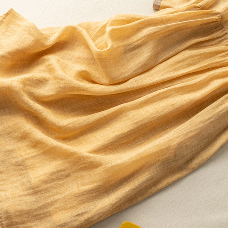 Vestido midi de Buddha Stones y lino con bordado étnico de primavera y media manga para mujer - Oro - US8-10,UK/AU12-14,EU40-42 (2XL) - image 2