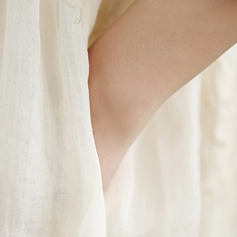 Vestido midi de lino y algodón con mangas tres cuartos, bordado informal en beige con Buddha Stones y bolsillos - image 10