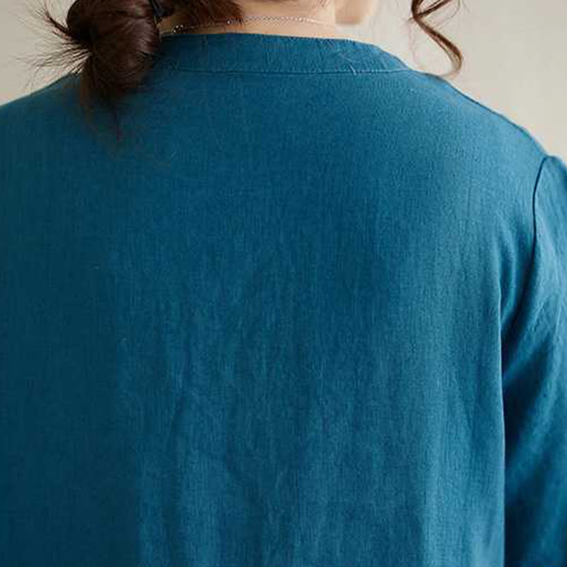 Vestido midi de lino de manga corta con cuello alto y botones, con bolsillos y diseño de Buddha Stones - DodgerBlue - US8-10,UK/AU12-14,EU40-42 (2XL) - image 15