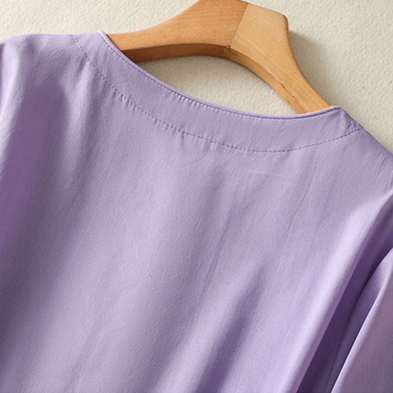 Vestido midi de lino y algodón con cuello en V, media manga y bolsillos, bordado de orquídeas de verano con Buddha Stones - image 13