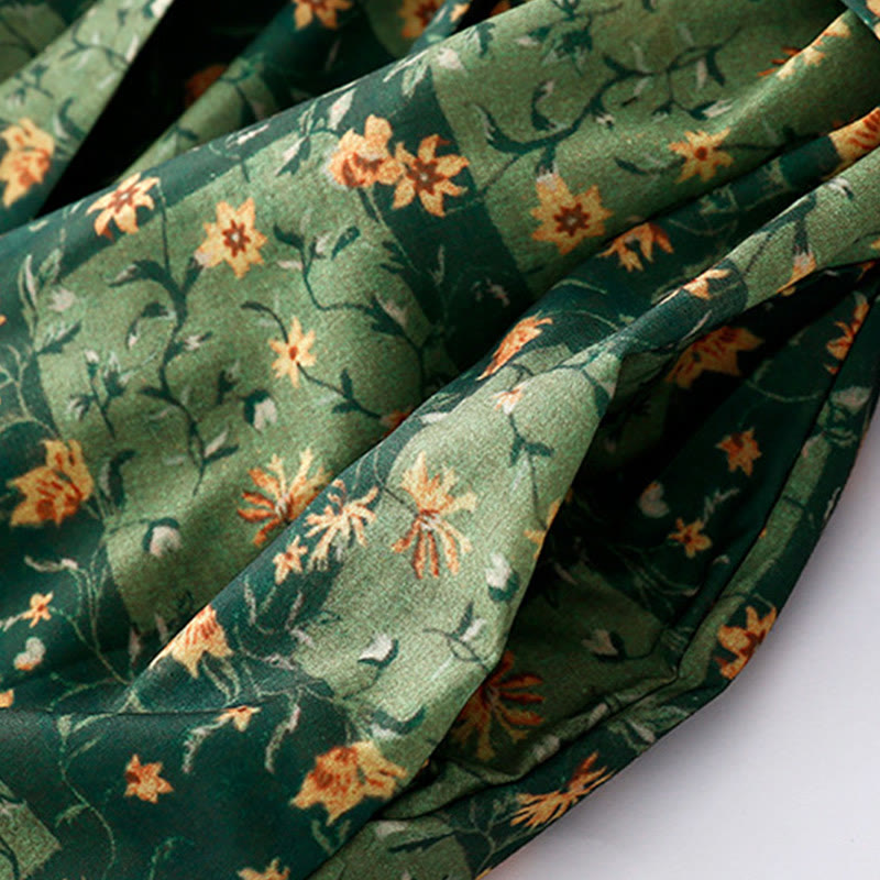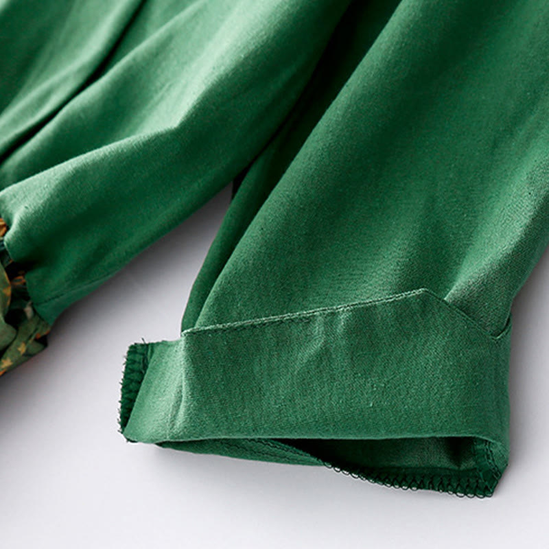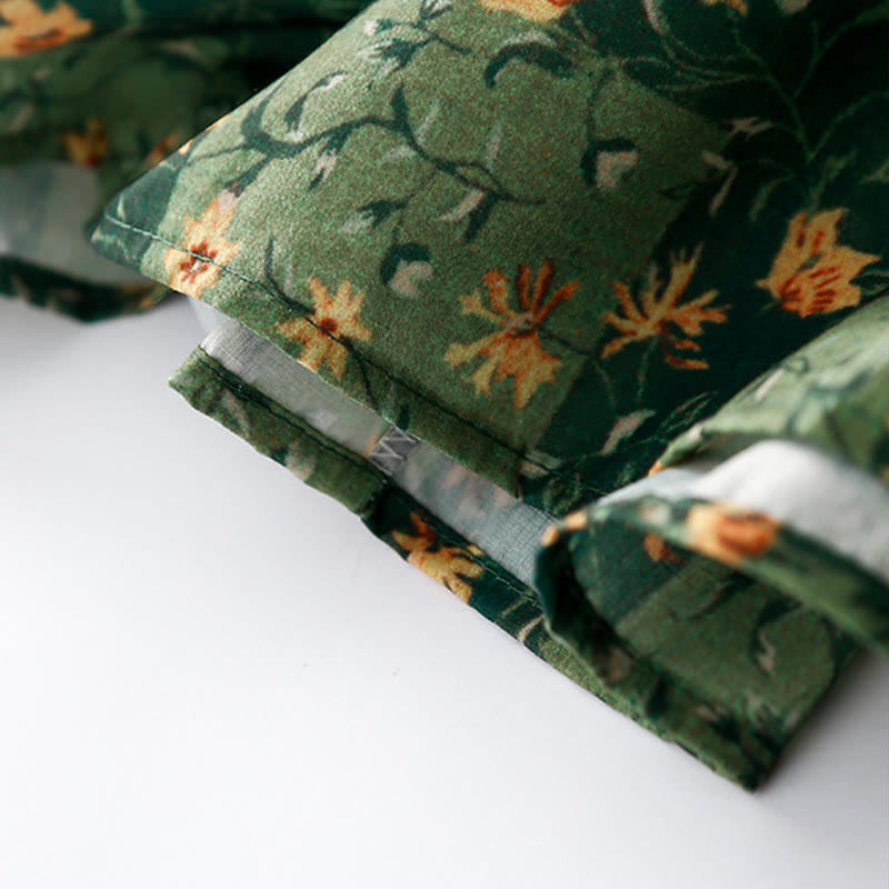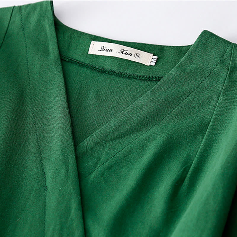 Vestido midi de lino y algodón con cuello en V, media manga y bolsillos, estampado de flores de primavera y Buddha Stones - Verde - US8-10,UK/AU12-14,EU40-42 (2XL) - image 0