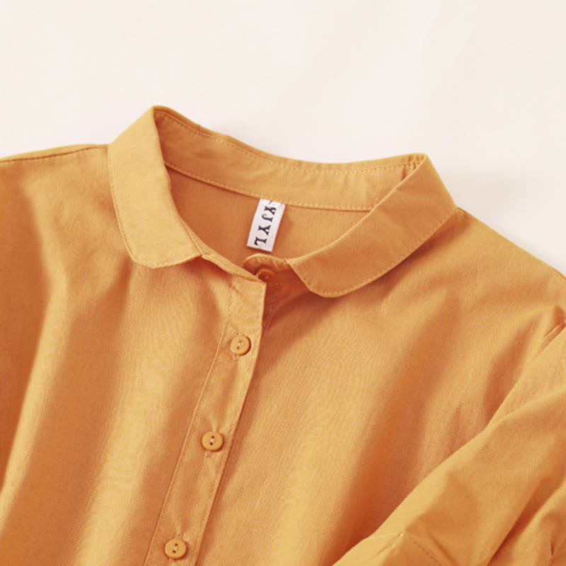 Vestido midi de lino y algodón de manga corta con diseño de botones de verano y bolsillos de Buddha Stones - Amarillo - US12, UK/AU16, EU44 (3XL) - image 18