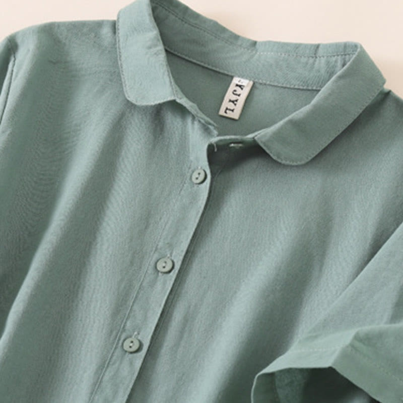 Vestido midi de lino y algodón de manga corta con diseño de botones de verano y bolsillos de Buddha Stones - Verde mar claro - US12, UK/AU16, EU44 (3XL) - image 23