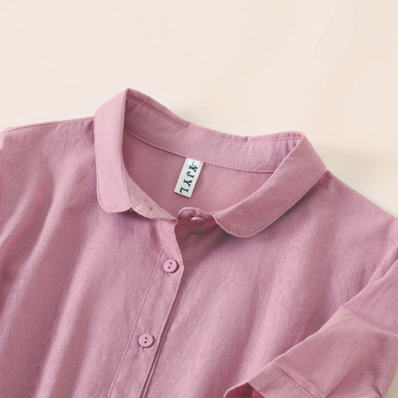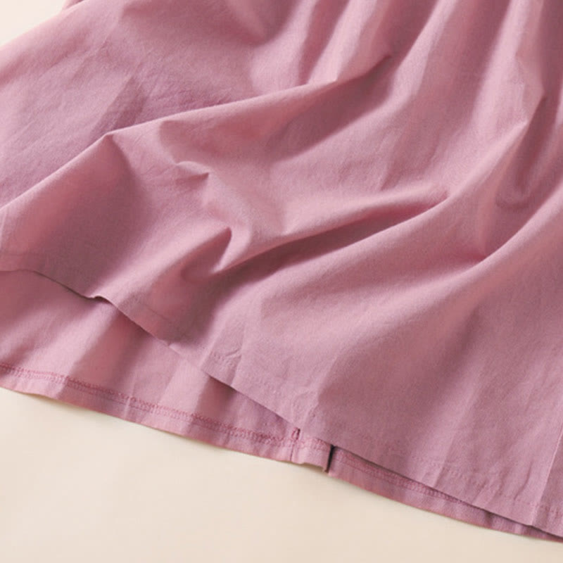 Vestido midi de lino y algodón de manga corta con diseño de botones de verano y bolsillos de Buddha Stones - Rojo violeta pálido - US12, UK/AU16, EU44 (3XL) - image 0