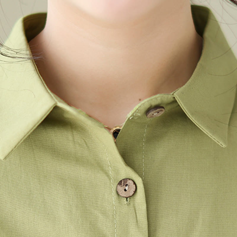 Vestido midi informal de verano con botones lisos y cuello alto, manga tres cuartos, acrílico, con bolsillos y diseño de Buddha Stones - image 15