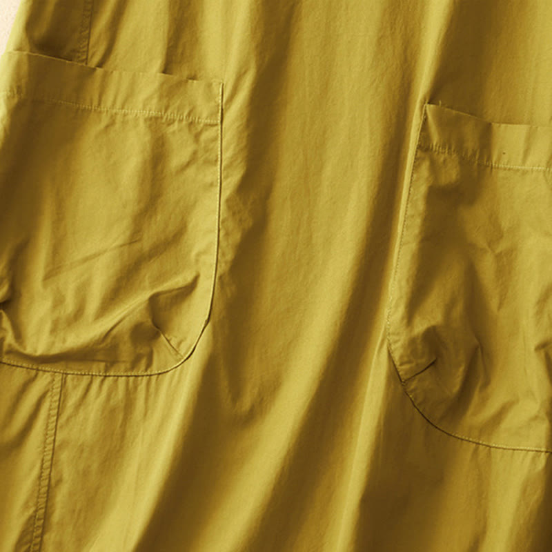Vestido midi de verano con cuello redondo, manga corta y bolsillos, de Buddha Stones