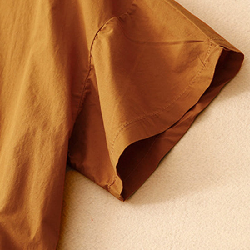 Vestido midi de verano con cuello redondo, manga corta y bolsillos, de Buddha Stones - Chocolate - US8-10,UK/AU12-14,EU40-42 (2XL) - image 0