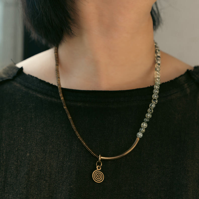 • material: fantasma púrpura, cuarzo hematoide rojo, cuarzo rutilado verde, cobre