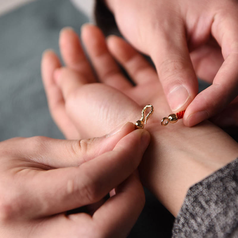 En los linajes del budismo tibetano vajrayana, es común atar una cuerda o hilo alrededor de la muñeca durante las ceremonias. Tradicionalmente, el lama bendice la cuerda y luego hace un nudo y le impregna un mantra. Al igual que otras tradiciones, se dice que estos cordones rojos traen suerte y ofrecen protección. En la antigua leyenda china, el hilo rojo del destino es invisible y une a todos aquellos cuyas vidas se entrelazarán. Está gobernado por el dios chino del matrimonio, Yue Lao, ya que se asocia principalmente con el vínculo entre dos personas destinadas a casarse. A lo largo de la historia y en todas las filosofías, el hilo rojo se ha usado para protección, fe, buena suerte, fuerza y conexión.