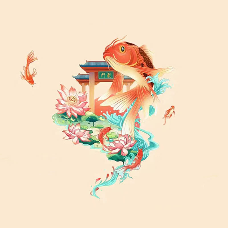 El pez siempre ha sido uno de los símbolos de buena suerte más utilizados y que se correlaciona con la atracción de riqueza y abundancia en el mundo del feng shui, porque la palabra pez en chino (yu) suena como "excedente", lo que representa un desbordamiento de buena fortuna. Además, los peces pertenecen al elemento agua y, en la creencia china, el agua también simboliza riqueza y prosperidad. Además de estos, el pez koi también es un símbolo de éxito y determinación. Además, el koi está ligado al símbolo yin yang. de hecho, se dice que las lágrimas blancas y negras del símbolo yin yang son representaciones de dos koi, uno masculino y otro femenino. por lo tanto, un par de koi se utiliza a menudo como símbolo de buena suerte para un matrimonio feliz.